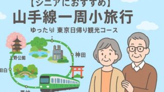 旅 【シニアにおすすめ】山手線一周小旅行|ゆったり東京日帰り観光コース∼プランA・B ゆっくり東京を巡るなら「山手線一周の小旅行」がおすすめです。都内に住んでいても意外と知らないスポットを、1日でのんびり楽しめます。本記事では、【シニア世代にぴったりな山手線小旅行ルート】のプランA,Bコースと【フリーパス情報】も紹介します。... 2025.10.05 旅